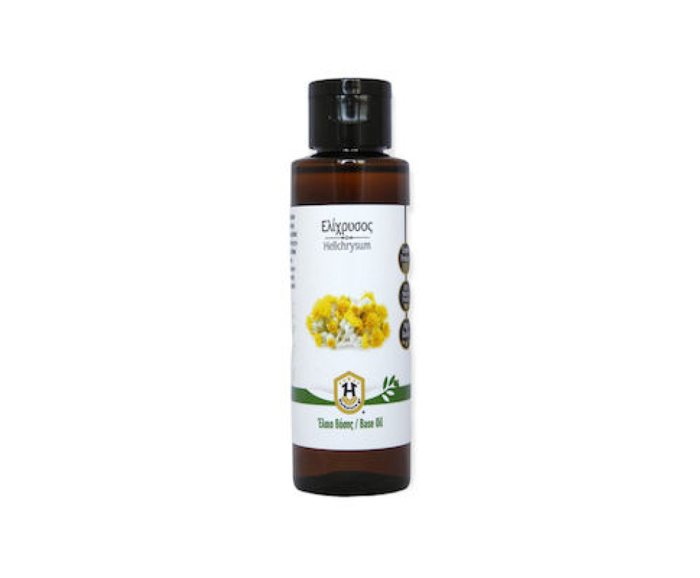 Έχει αντιγηραντικές ιδιότητες και βοηθά στην εξάλειψη των ρυτίδων και των λεπτών γραμμών. Είναι κατάλληλο για τους μαύρους κύκλους στην περιοχή των ματιών και το ΄΄πόδι της χήνας΄΄, μειώνει τις δυσχρωμίες και προστατεύει το δέρμα και τα μαλλιά από τις υπεριώδεις ακτίνες. Για όλους τους τύπους επιδερμίδας. Το Λάδι Ελίχρυσου, όπως και όλα τα έλαια βάσης που κάνουμε, γίνονται με extra παρθένο ελαιόλαδο το οποίο επεξεργάζεται με τα βότανα μας, που είναι σε χλωρή μορφή. Βάσει ερευνών έχει διαπιστωθεί ότι όταν τα έλαια βάσης γίνονται με χλωρά βότανα (όπως τα δικά μας) αποδίδουν το 100% των ιδιοτήτων που μπορούν να δώσουν, σε αντίθεση με τα λάδια του εμπορίου που γίνονται με αποξηραμένα βότανα και αποδίδουν μόλις το 50%!