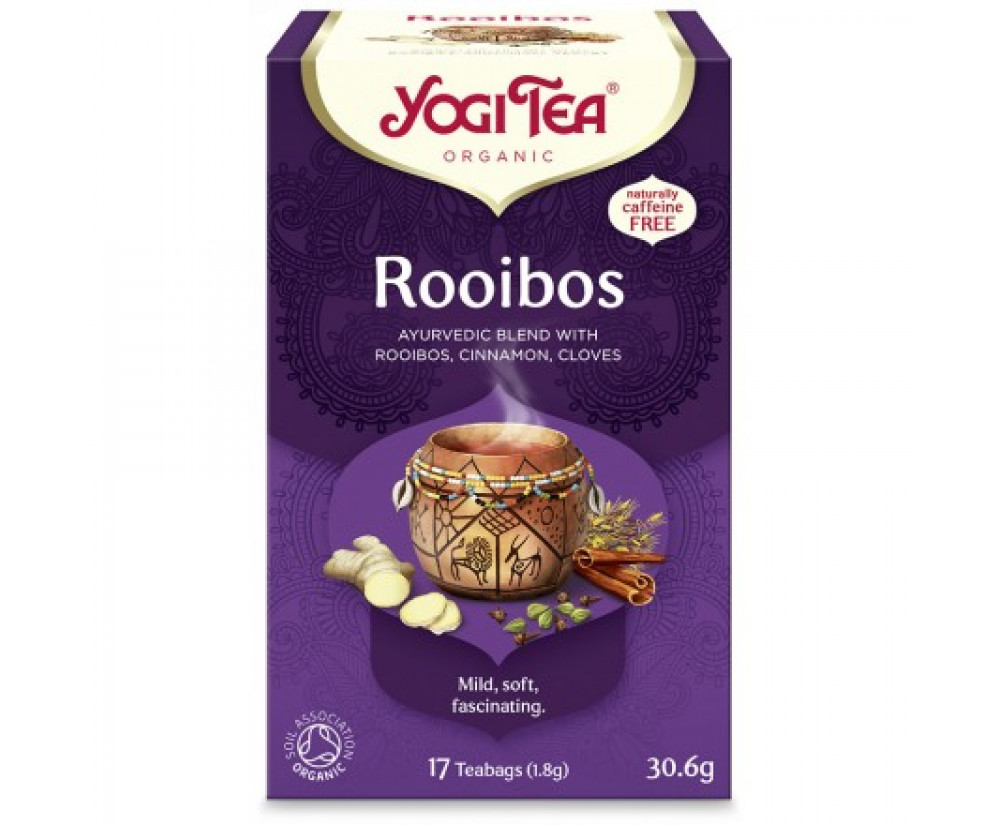 YOGI TEA® Rooibos, στην ζεστασιά των βουνών της νότιας Αφρικής, το φυτό ασπάλαθος φυτρώνει κρεμασμένο από τους βράχους απορροφώντας την έντονη ηλιοφάνεια. Την τελευταία δεκαετία απέκτησε δημοτικότητα ανά τον κόσμο για την ανάλαφρη, λουλουδάτη γεύση του και την φήμη του σαν φυσικό αντιοξειδωτικό. Αυτό το τσάι αναμειγνύει τον ασπάλαθο με τα συνηθισμένα μας μπαχαρικά “Classic” δημιουργώντας την ουσία της χαράς, της ηρεμίας και της ζεστασιάς. Eίναι καταπληκτικό και σαν δροσιστικό παγωμένο ρόφημα.
